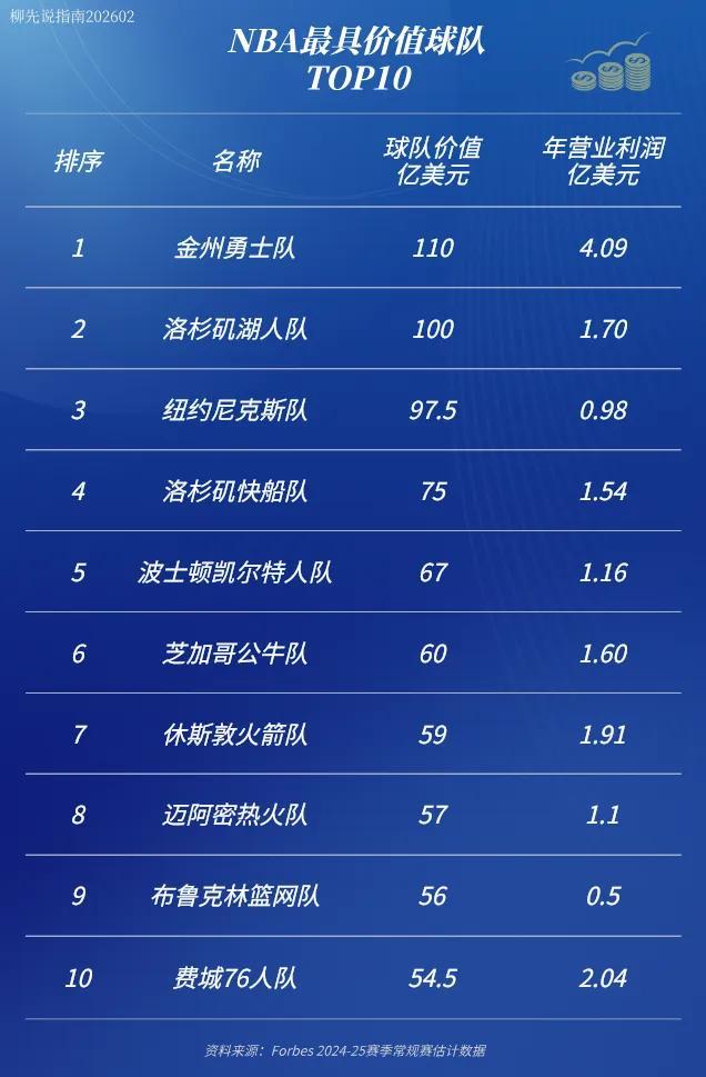 开云体育APP下载-NBA球队年度赚钱王:球队估值110亿美元,年利润相当于两个湖人